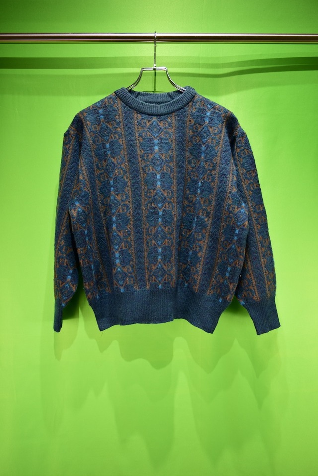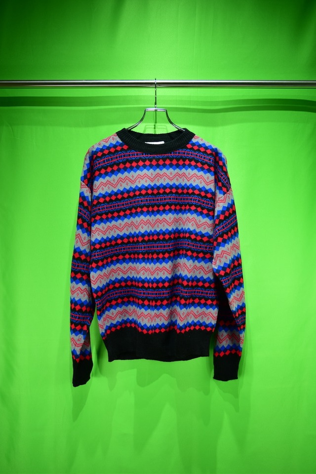 vintage euro Acryl wool print polo knit sweater イタリア製