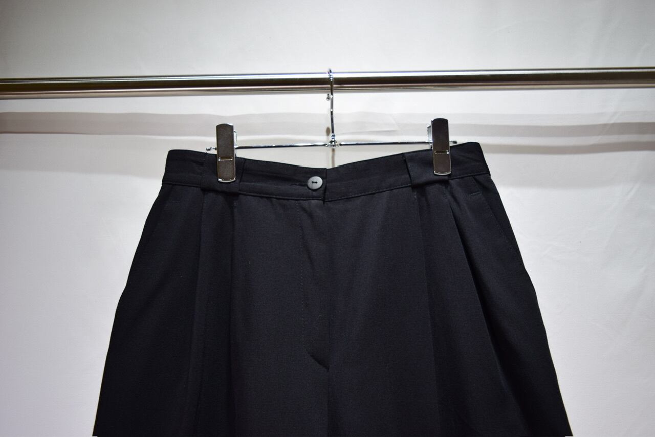 vintage euro ladies summer wool poly black wide slacks shorts OPTIジップ