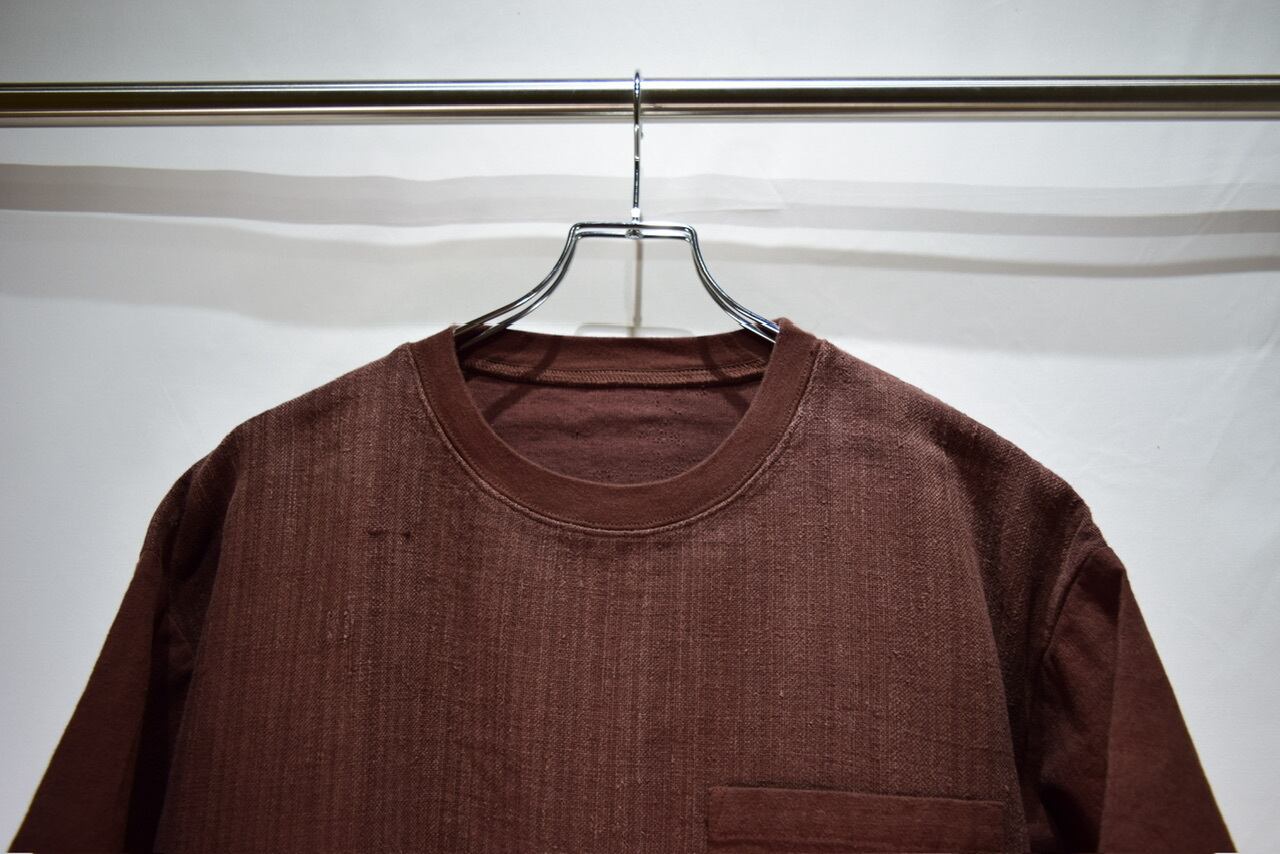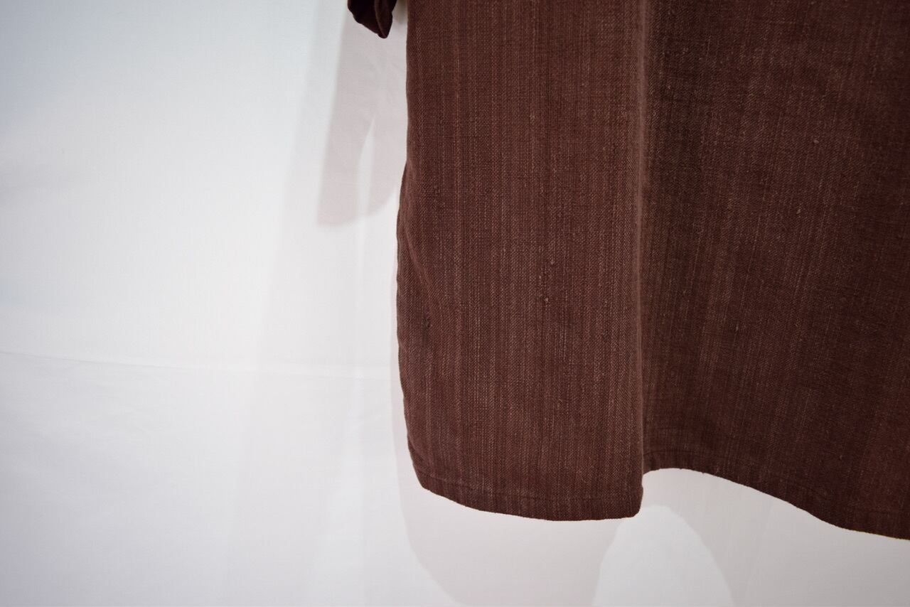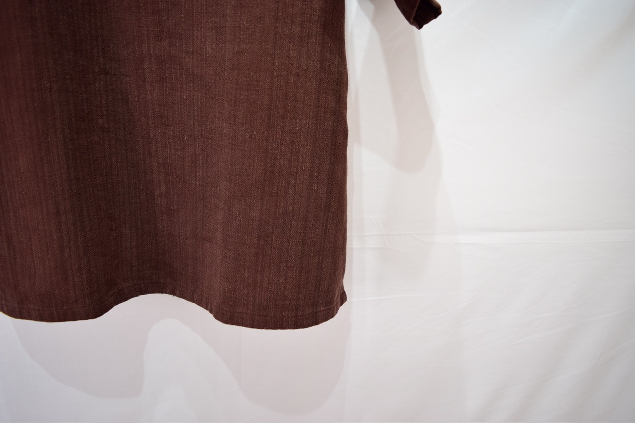リネン生地の中でも最高級と言われている「フレンチリネン」を使用しオリーブカラー、ブラウンカラーの2色展開、ワンサイズでTシャツを製作しました。