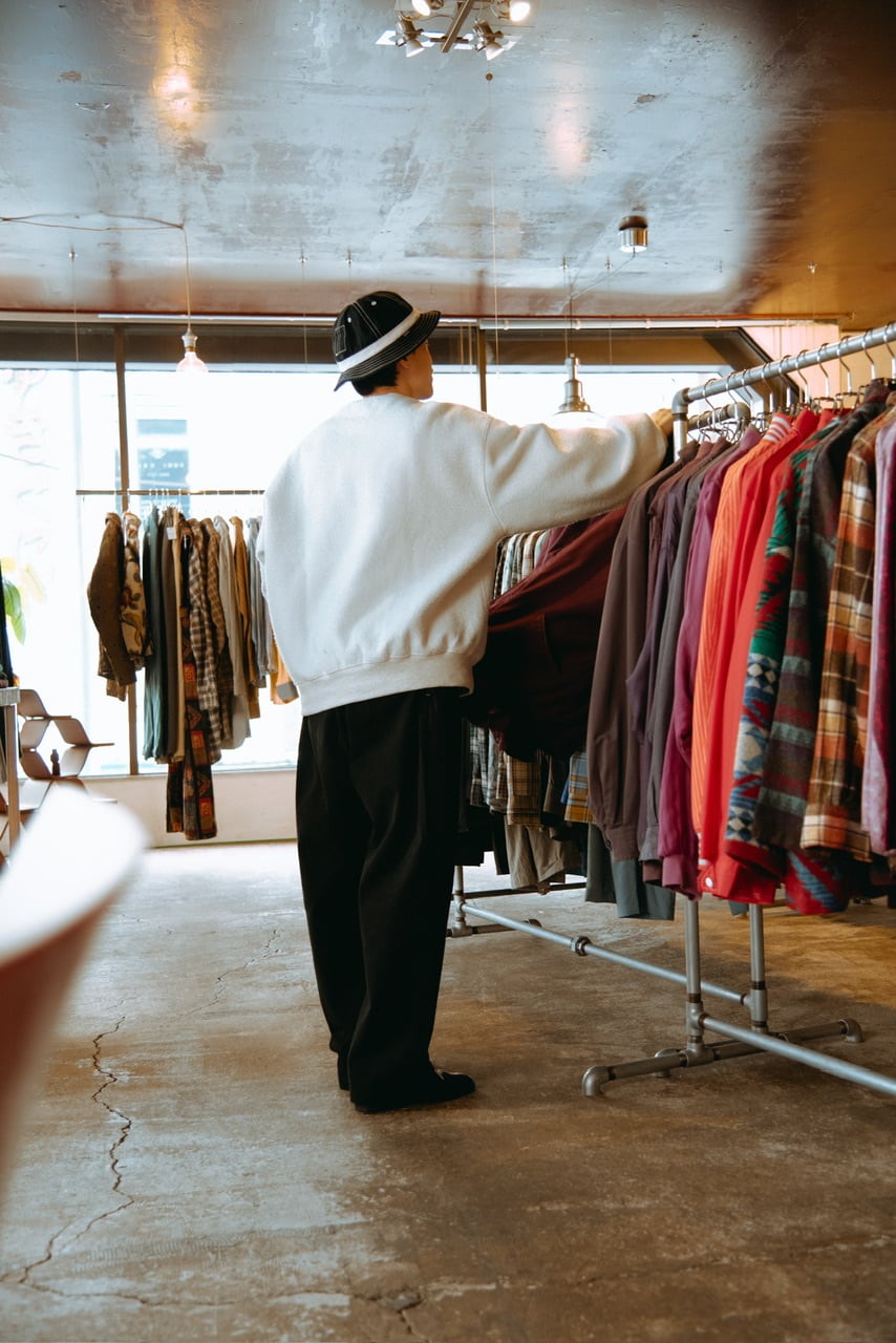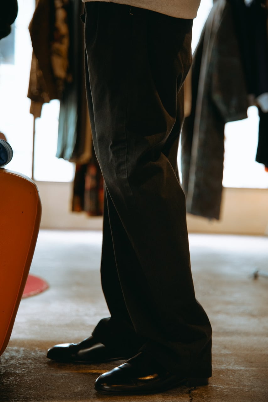 元々ウエストW38〜42の巨大なアイテムを加工しているのでかなりテーパードが効いていて太めなワイドシルエットです。