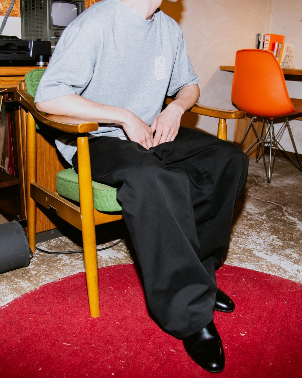 元々ウエストW38〜42の巨大なアイテムを加工しているのでかなりテーパードが効いていて太めなワイドシルエットです。