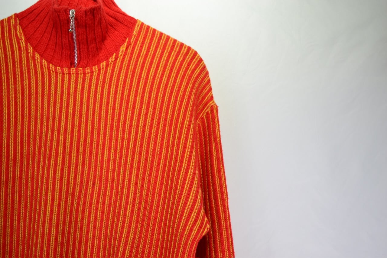vintage euro Acryl wool cotton design zip sweater イタリア製