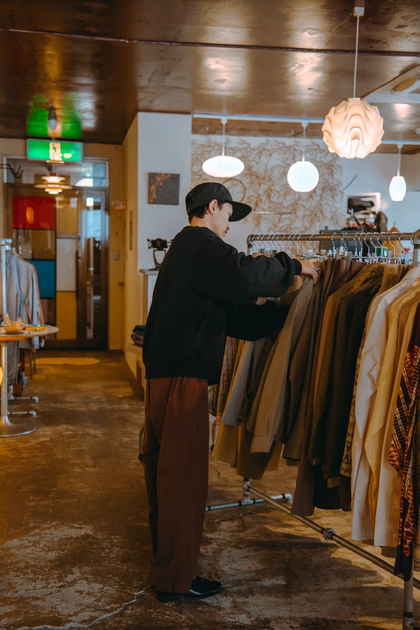 元々ウエストW38〜42の巨大なアイテムを加工しているのでかなりテーパードが効いていて太めなワイドシルエットです。