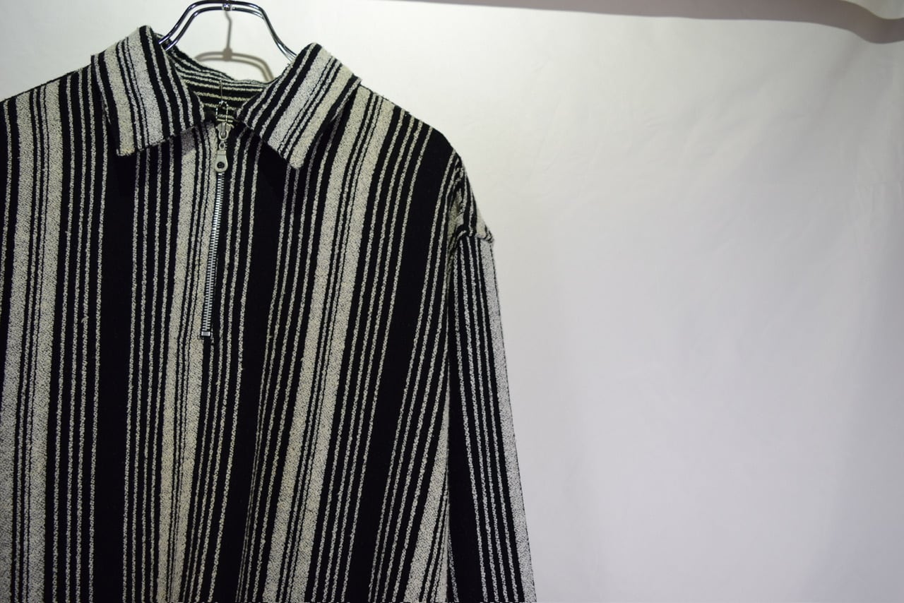 vintage euro heavy cotton stripe half zip design shirt