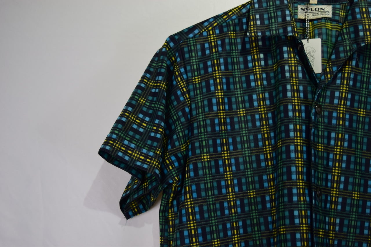 vintage euro nylon design print open collar shirt