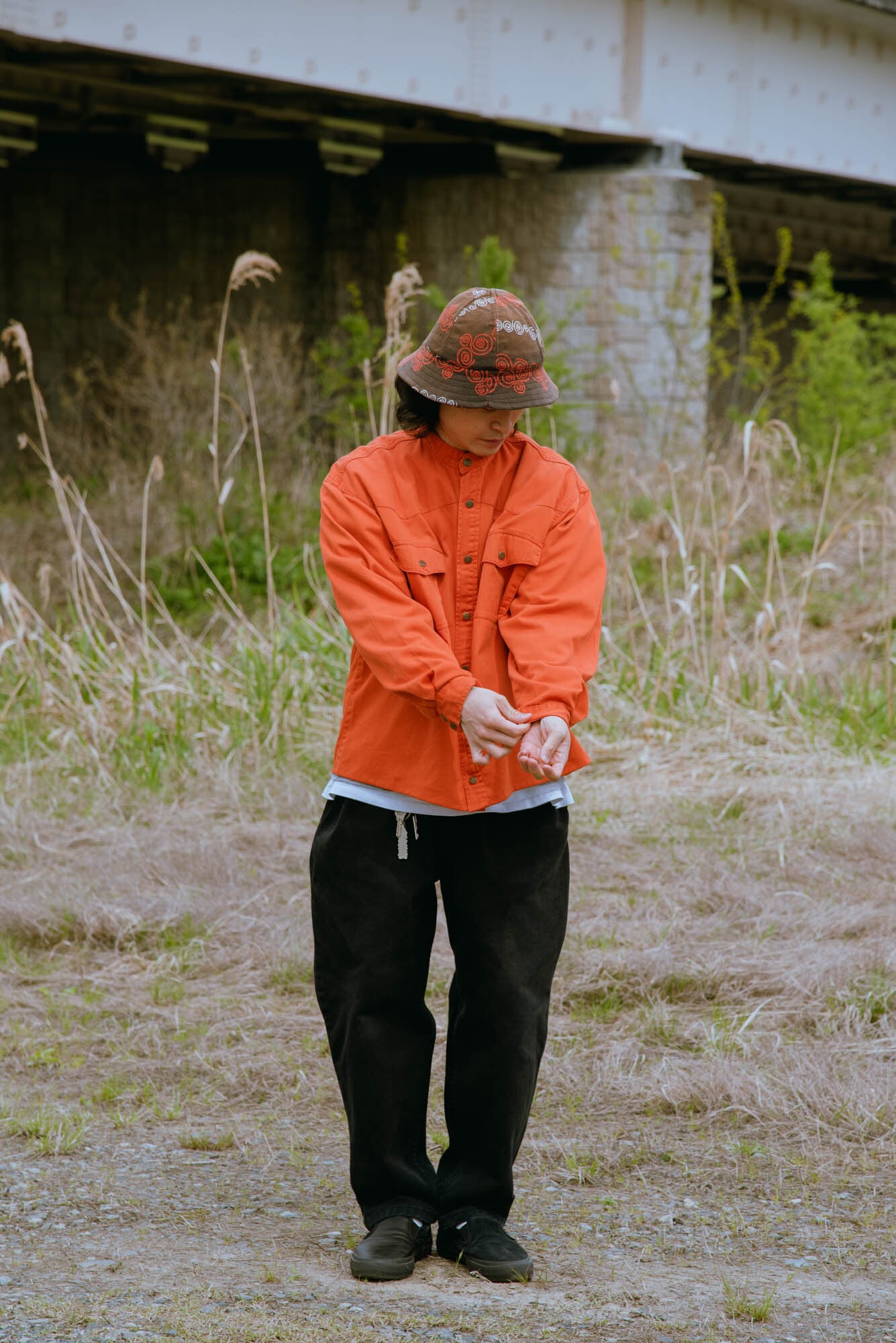 リメイク古着 vintage round neck short cotton shirt
