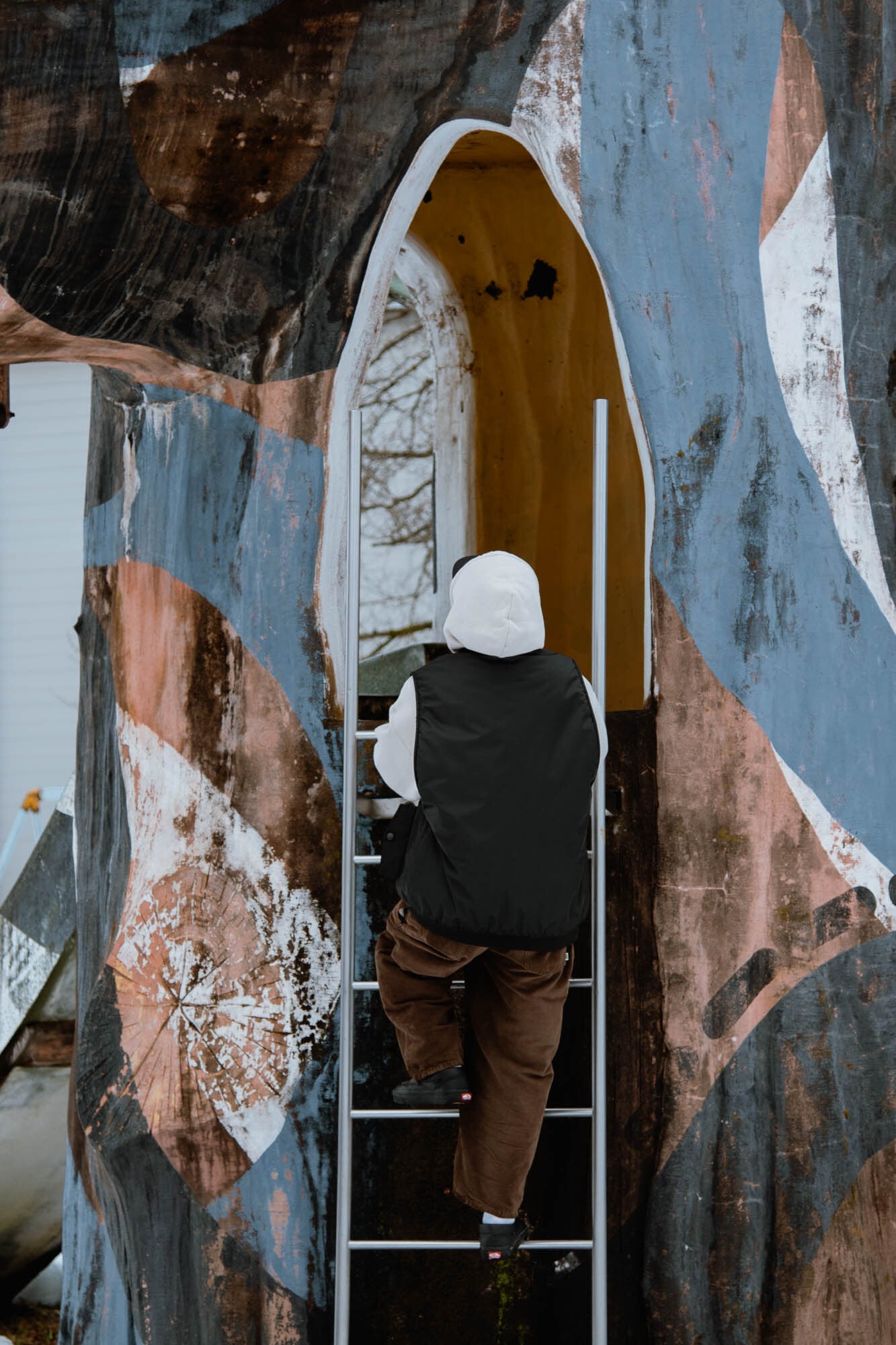袖口部分を広く作り、動きやすさやシルエットを整えてます。
