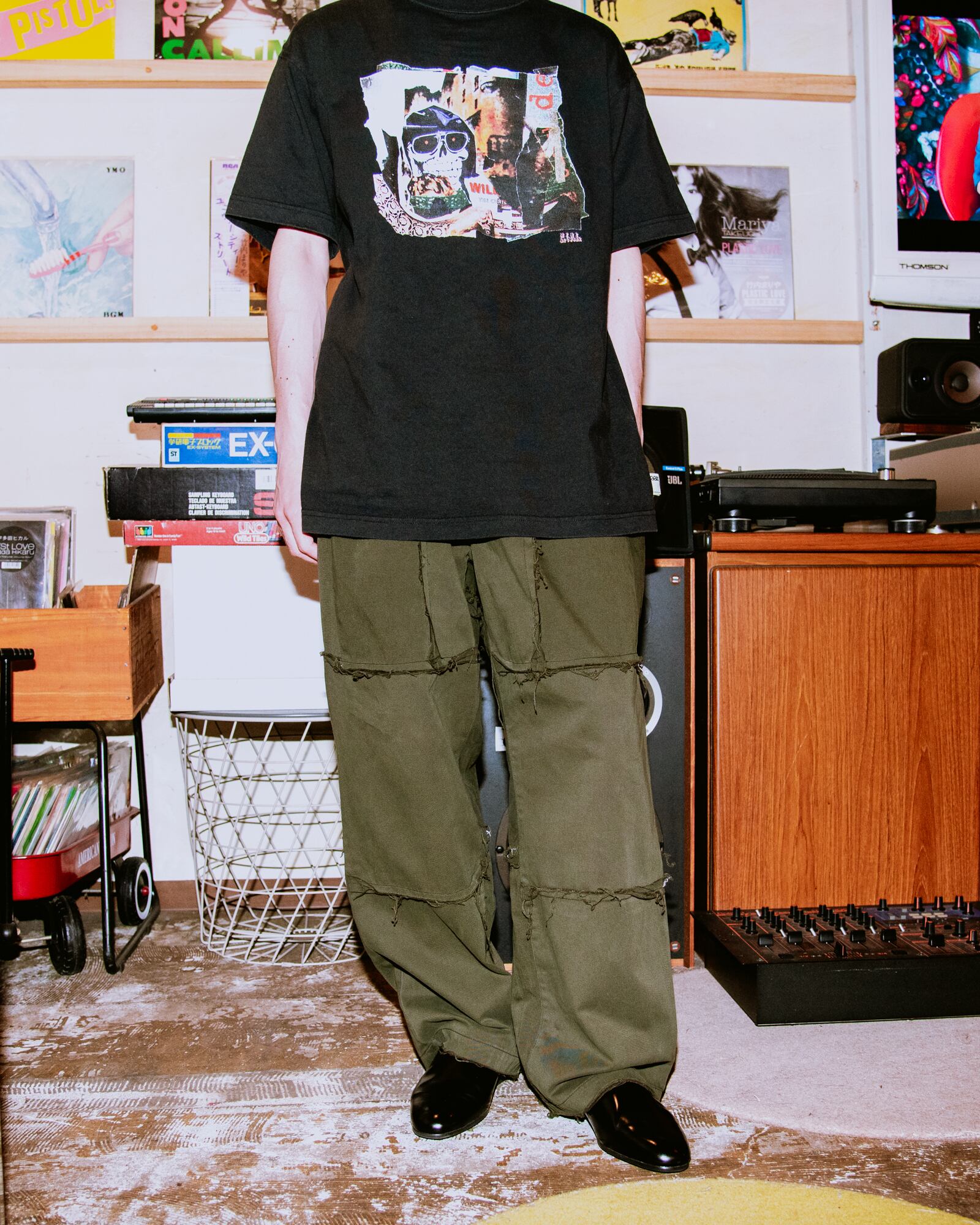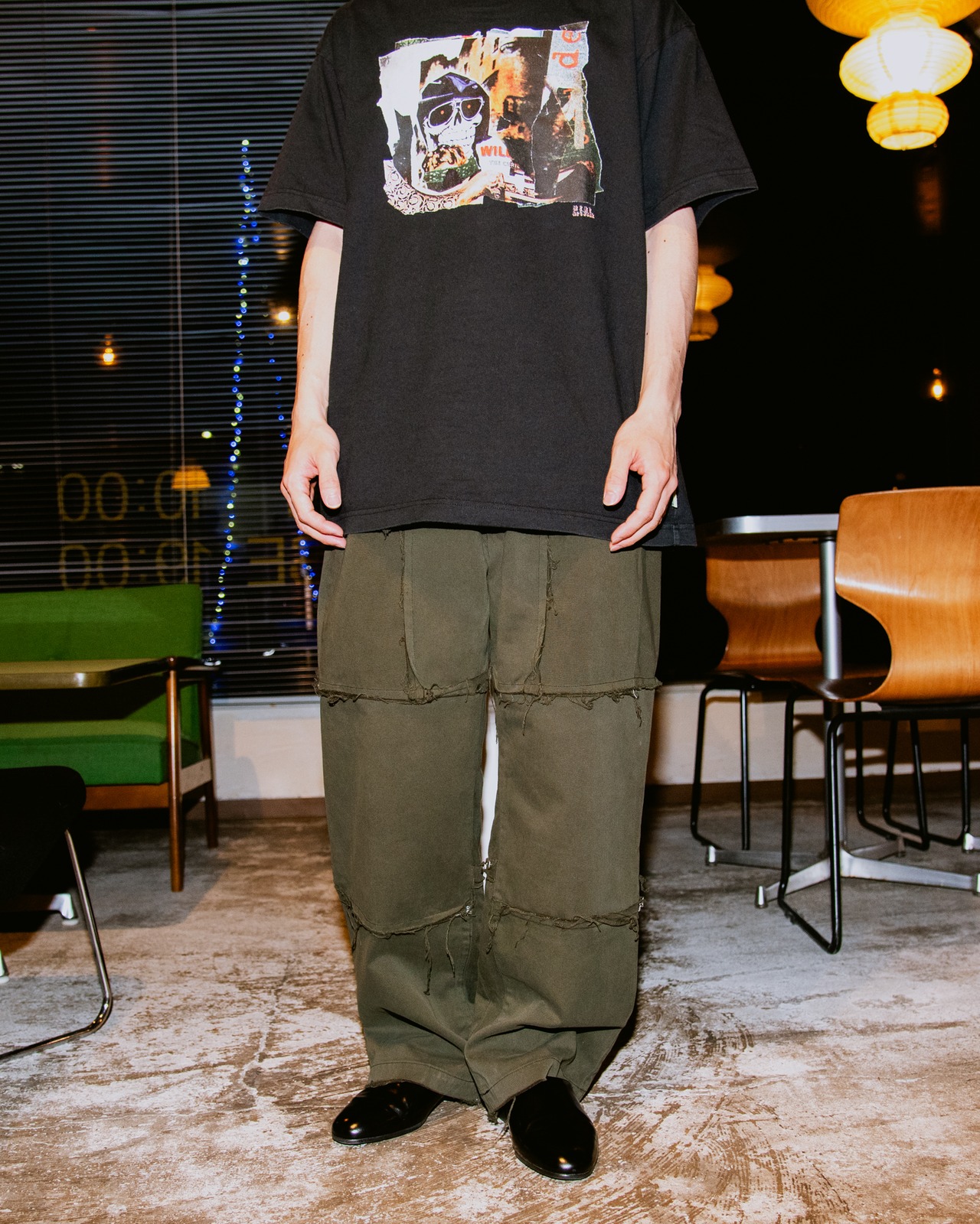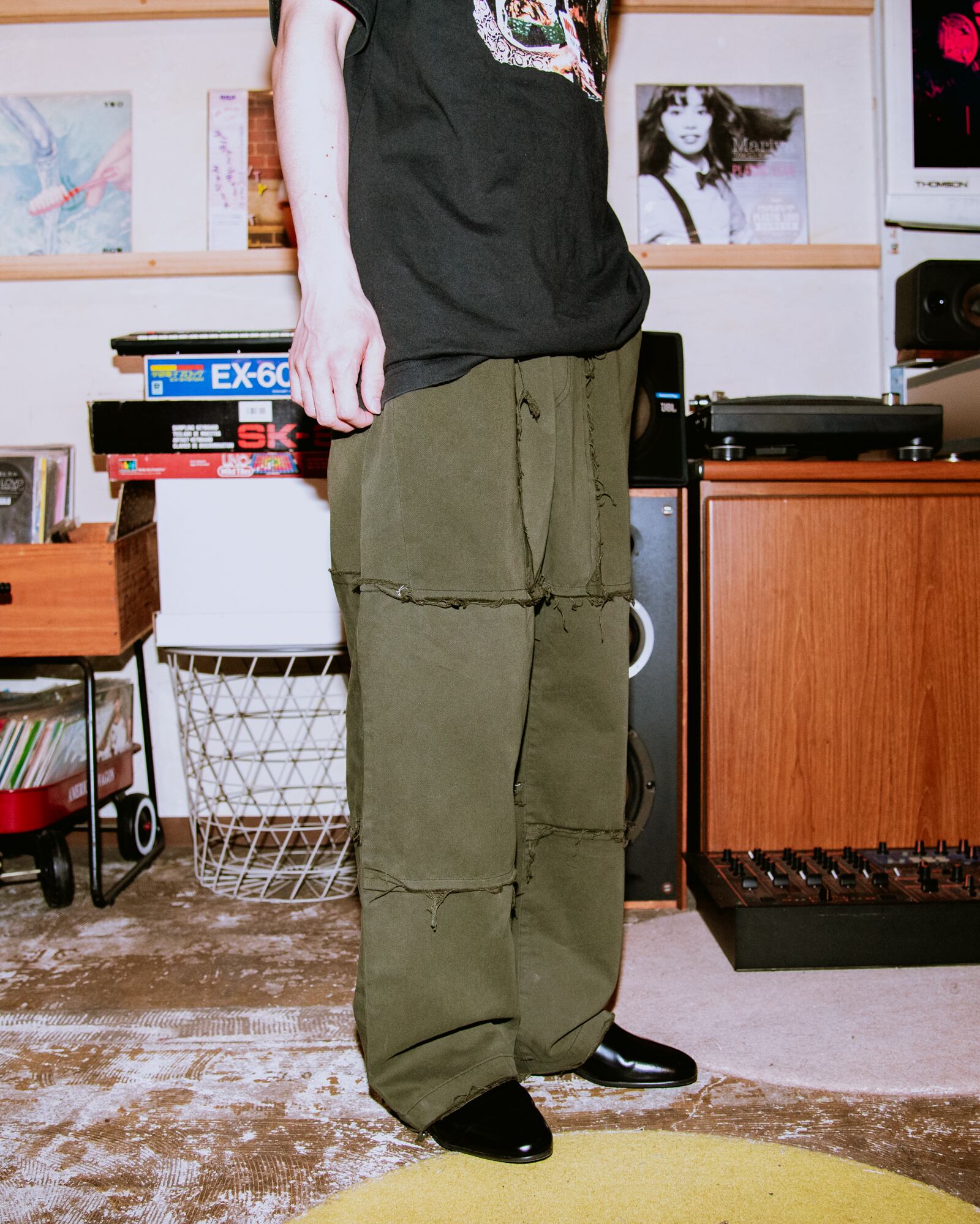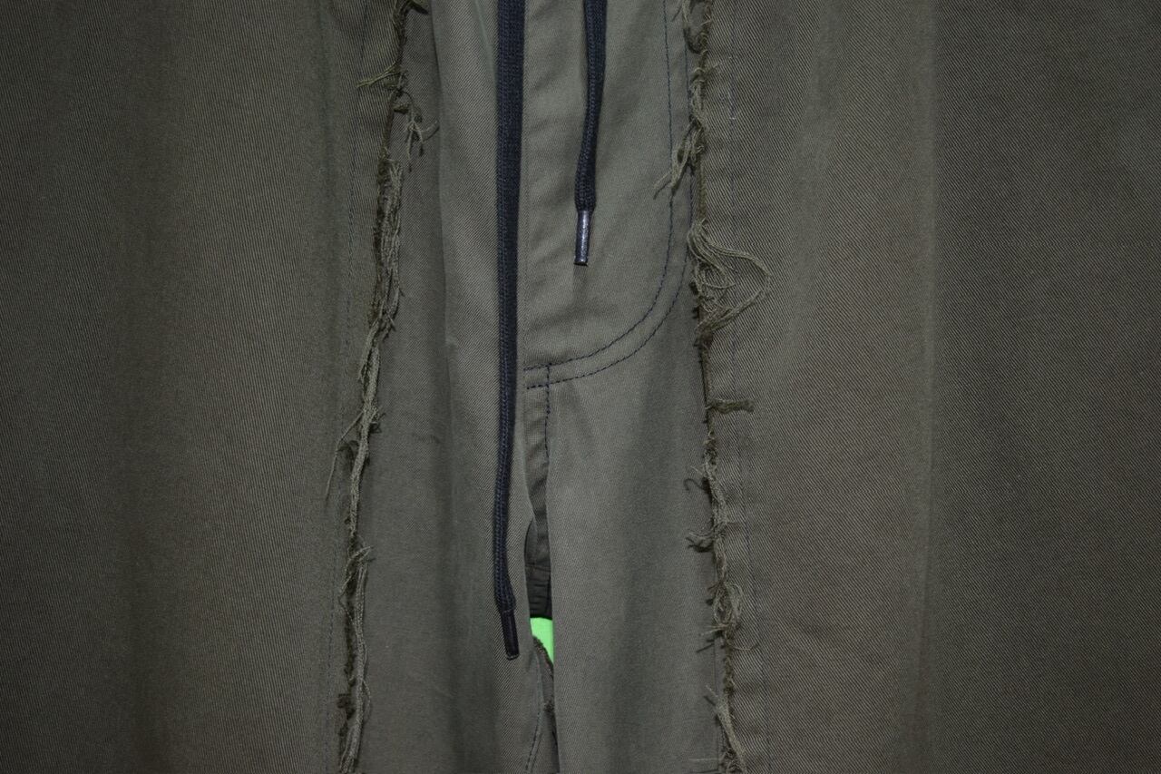 以前ラルフローレンのオリーブ染めリメイクパンツを作った際に余ったハギレが出てしまい、そのハギレを使用し新たにリメイクパンツを作り上げました。