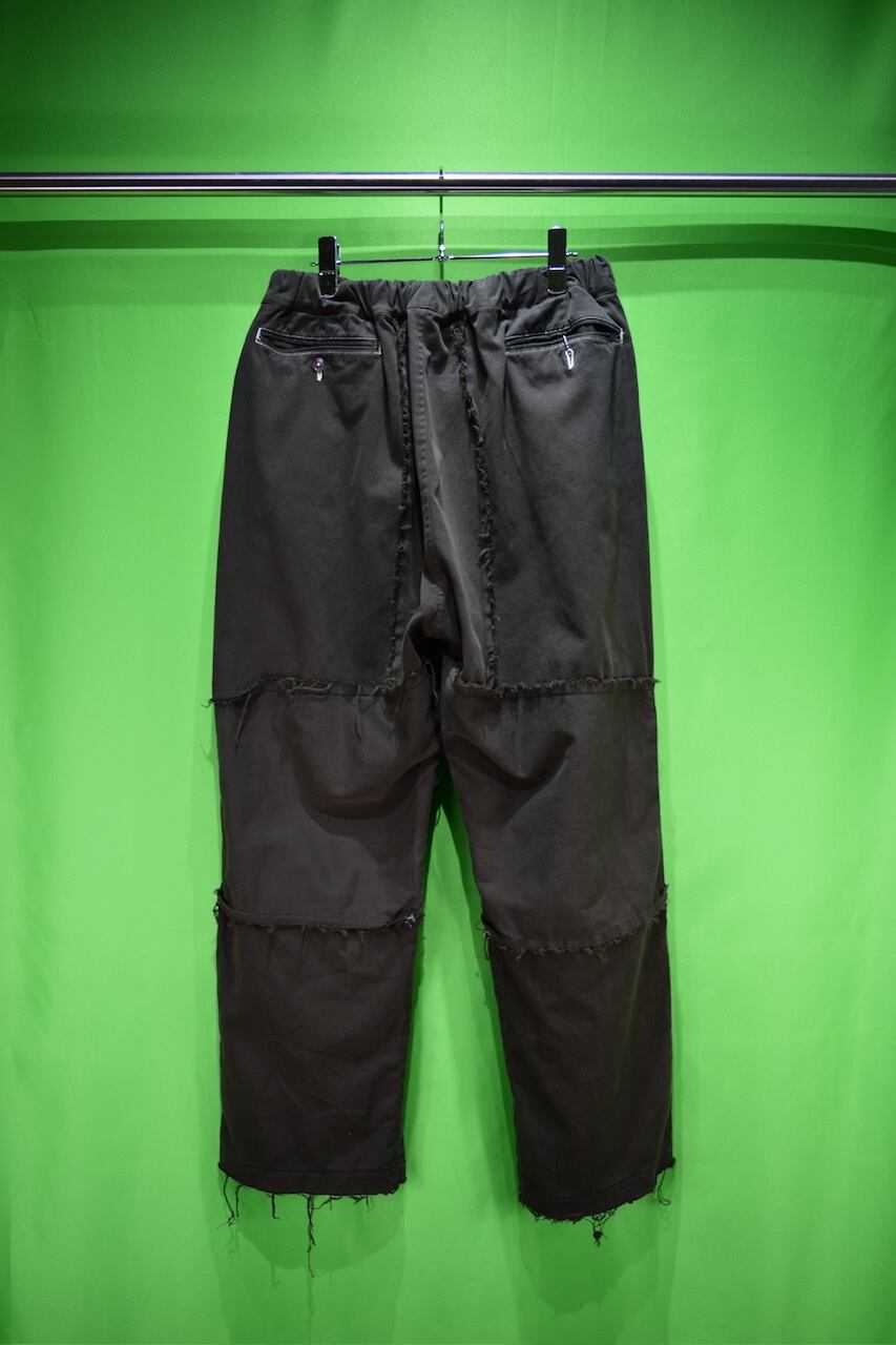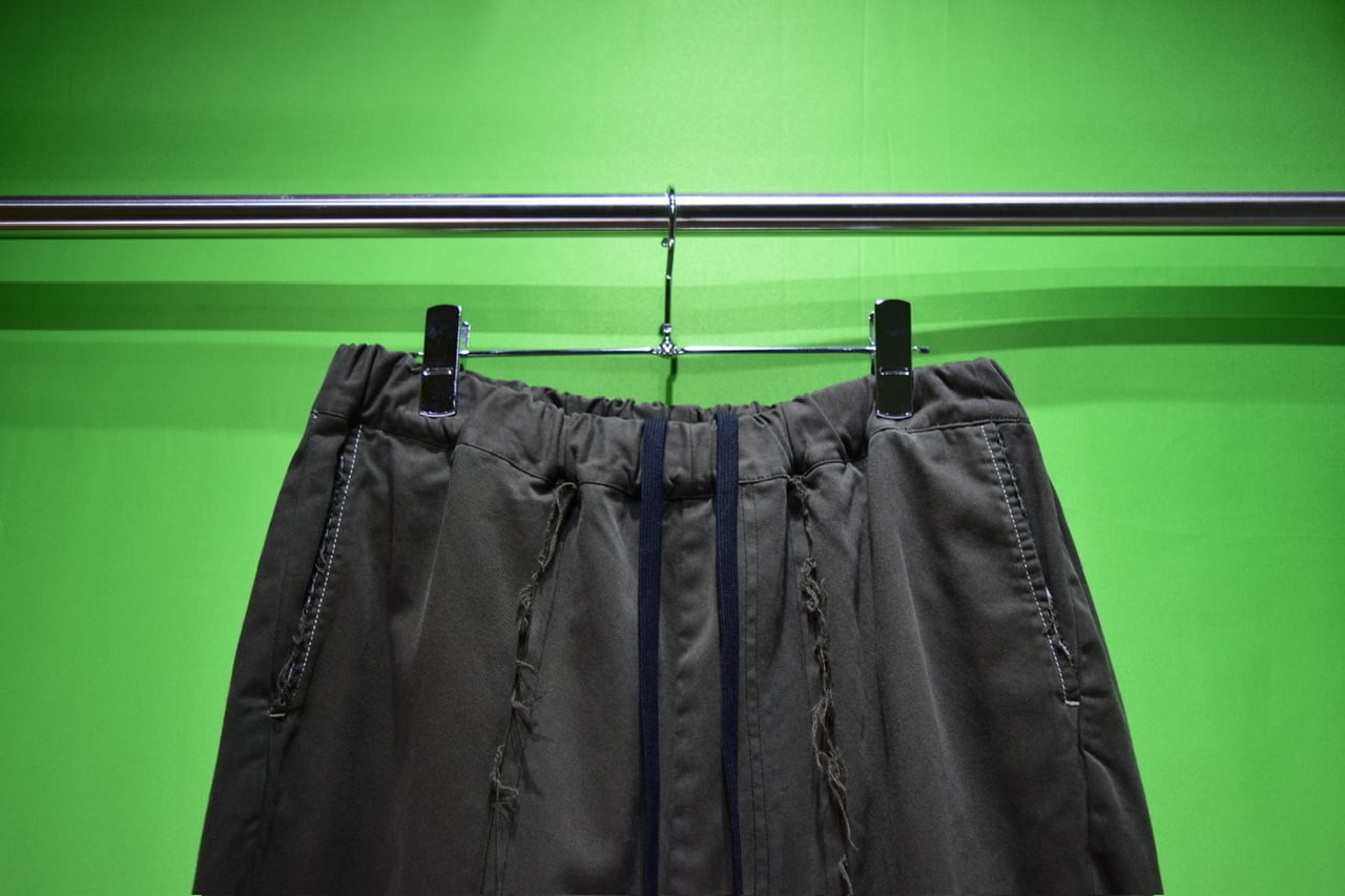生地と生地をつなぎ合わせ、フリンジ加工、ウエストゴム加工を加えて進化したリメイクパンツです◎